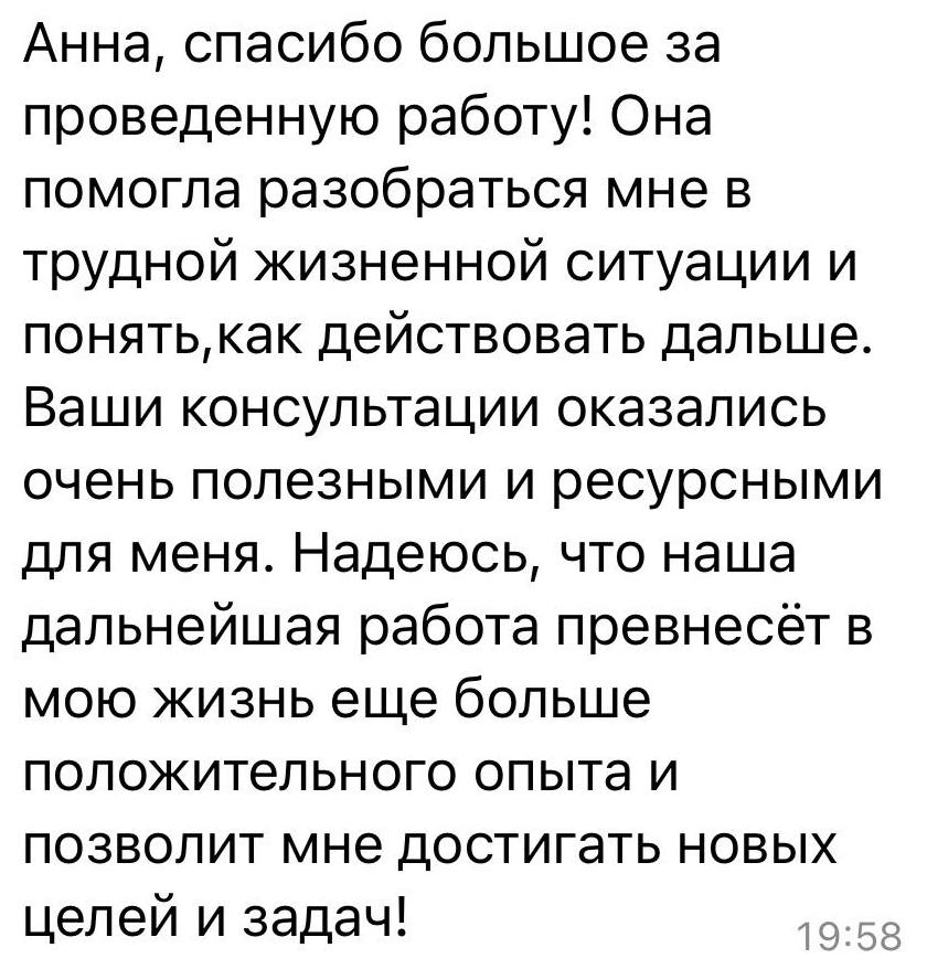 Мой главный принцип – помогать тем, кто осознанно ищет помощи. Я не предложу волшебную таблетку, но буду сопровождать Вас в интересном пути самопознания. Докопаемся до сути вместе и разложим по полочкам сложные вопросы.